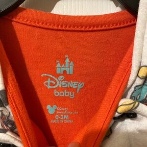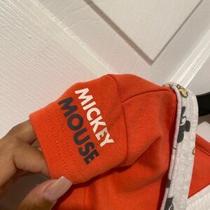 Cute overalls featuring Mickey Mouse print. Comes with a vibrant red t-shirt. Worn once! :)