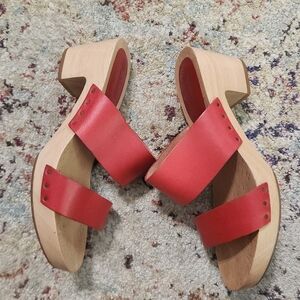 Madewell Clara Wooden Clogs 2 Strap Leather Wooden Sandals Red Size 9.5