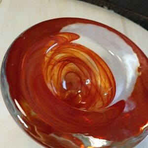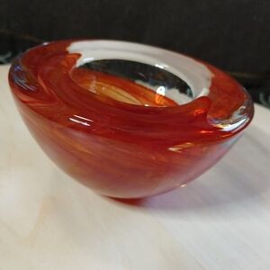 Elegant Art Glass Red Swirl Kosta Boda Votive Bowl