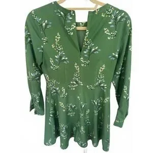 LOFT Women's Green Flower Branch Flare Dress
