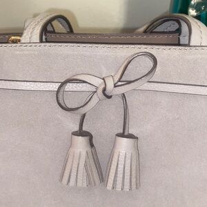 Chic Kate Spade satchel in taupe. Features elegant tassel accents. Perfect for everyday style.