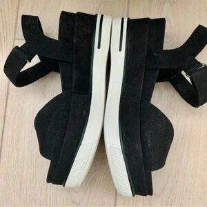 Eileen Fisher Black Beck Sporty Platform Wedge Heeled Sandals