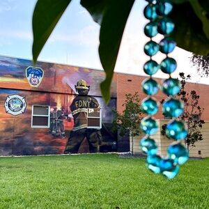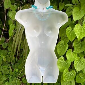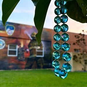 This unique and beautiful necklace includes 21 clear sky blue acrylic beads in a round shape, adding a touch of beauty and art to any outfit.