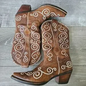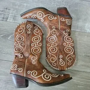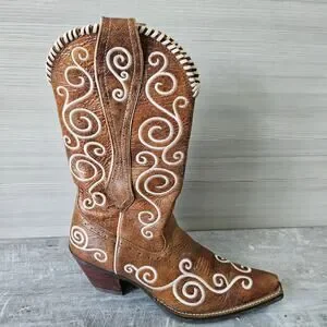 Ariat Shelleen Womens Western Leather Boots White Swirl Embroidery Size 7.5