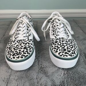 Unisex men’s 7.5 women’s 9. Stacked chunky platform Vans Old Skool leopard.