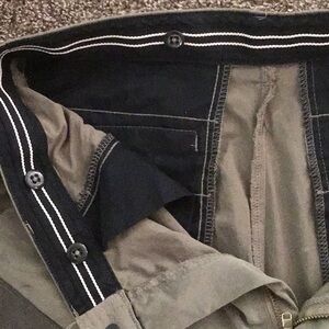 Cabela’s outdoor gear .Men’s Size 34 Reg two-tone hunting/ fishing pants. Featuring a unique design in green and tan.