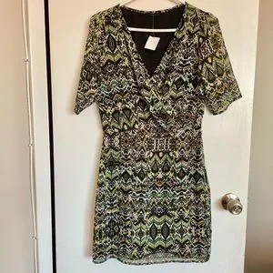 Ikks Women V-Neck Short Sleeve Dress - Size 36