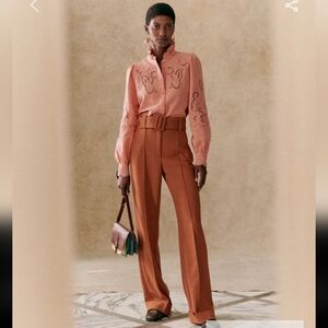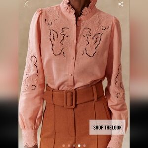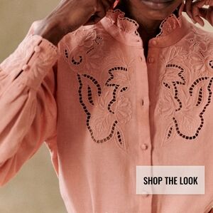 Sezane Lilia Peach Blush Button Down Shirt with Embroidery
