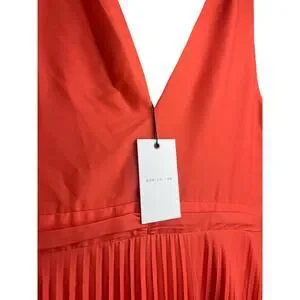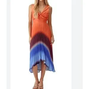 Adelyn Rae Sharkbite Pleated Cocktail Dress | Womens L, Orange, Ombre Blue NEW