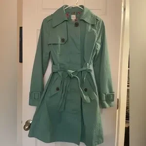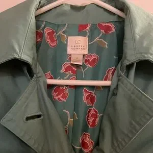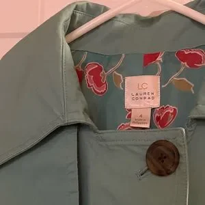 LC Lauren Conrad Teal Trench Coat with Floral Lining, Size 4