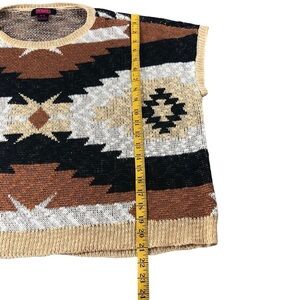 Rock&Roll Denim Azetc Boho Print Knit Sweater Vest Two Tone Sz XL