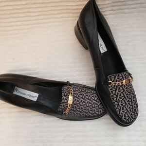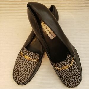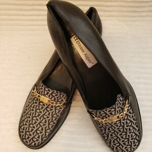 Etienne Aigner Black & Gold Logo Loafers – Women’s Size 10 NWOT