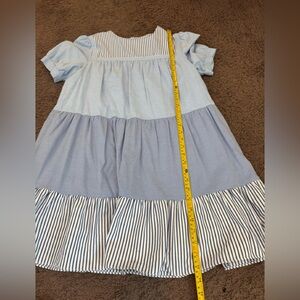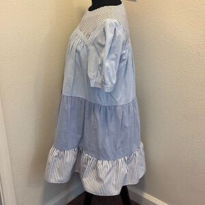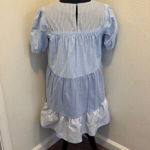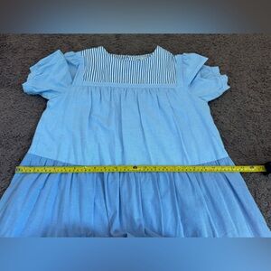 Tuckernuck English Factory Quinn Blue Striped Short Sleeve Tiered Dress M