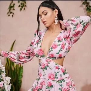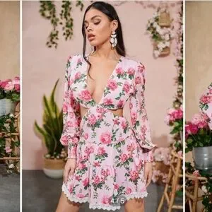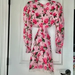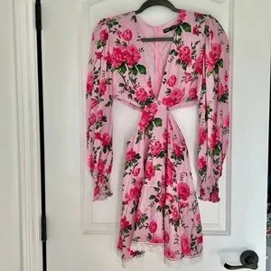 Pink Rose Floral Love Shack Style Cut Out Dress XS