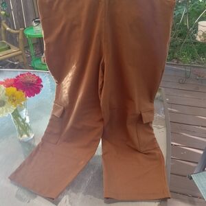 Never worn pull on cute crop cargo pants in a sienna brown color called café au lait. Nice for summer with a tank and cute flats. Pork chop pockets and cargo pocket on each leg. Inseam 22" Waist laying flat 17"