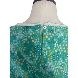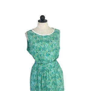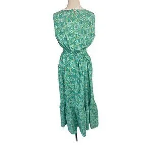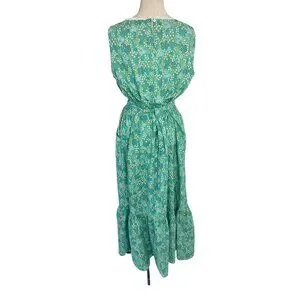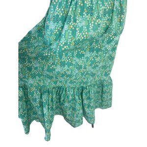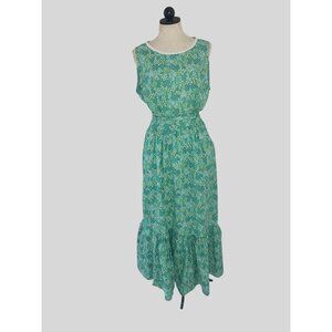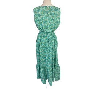 Vintage Womens Dress Size XL Green Floral Handmade Maxi Pockets Belt Cottagecore