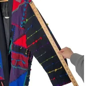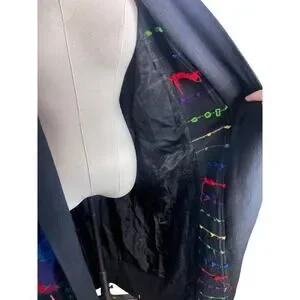 RARE! Vintage 90s COOGI Mens S Woven 3D Sweater Coat Long Duster Cardigan Black