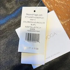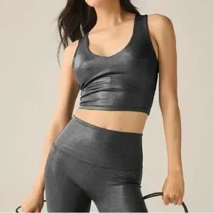 NWT Beyond Yoga Heather Rib Black Shine Glow On Cropped Tank