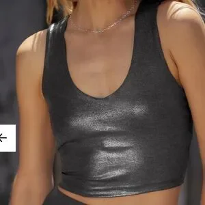 NWT Ribbed V-neck cropped racerback black top with a metallic sheen. π€β¨β¨β¨