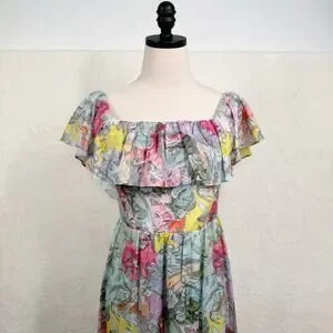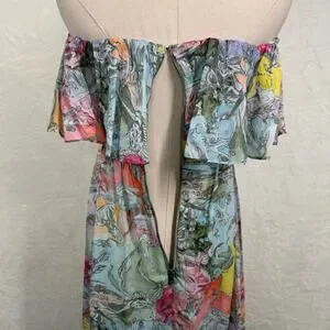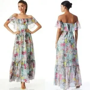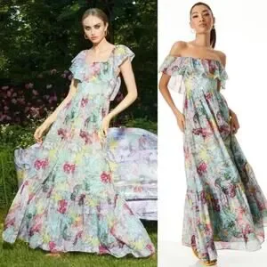 Alice + Olivia x Lola Schnabel Tempie Ruffle Off The Shoulder Maxi Dress in Lola's Dream.