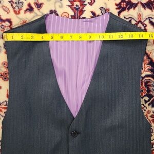 150's Wool and Cashmere, Francesco Conanico-Tessuti Italia fabric. Suit fits approximately a 38R, measurements as shown in the pictures. This is a 3-piece suit including a vest. In fantastic condition. It has a retro purple striped lining throughout the jacket and vest. The pants have about 2 inches of additional fabric they can be lengthened by. There is a subtle herringbone pattern in the material and it feels luxurious.