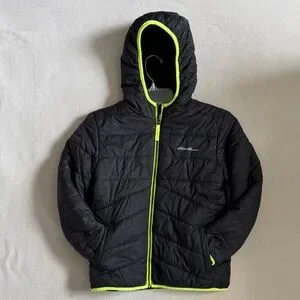 Eddie Bauer Zip Up Hoodie Fleece-Lined Black Jacket with Neon Trim