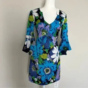 Trina Turk Winnie Wild Flower Faille Bell-Sleeve Dress NWT Sz 0