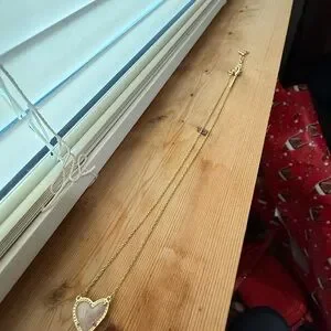 Charming heart necklace with a gold chain. Features a pink stone centerpiece. Ideal for everyday elegance.