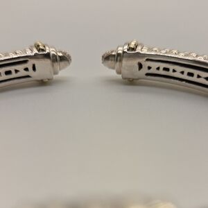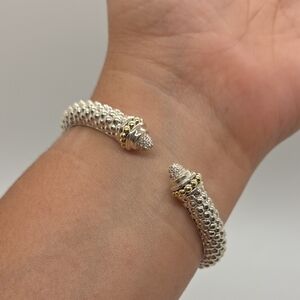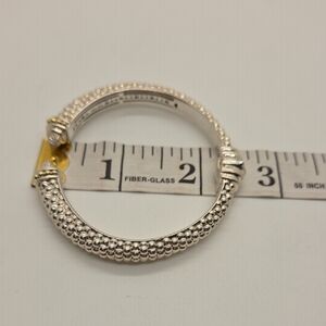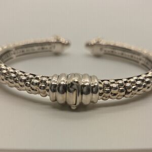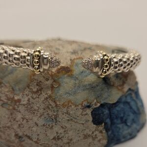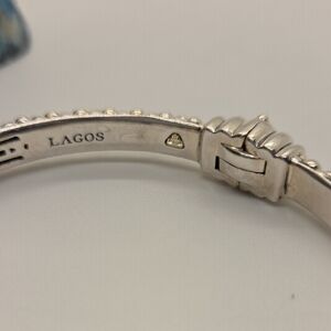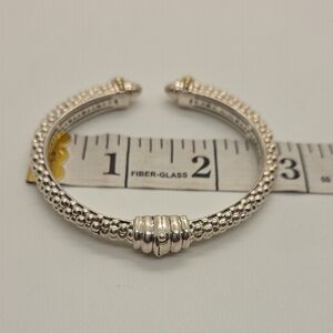 Lagos Caviar cuff bracelet in owned condition Stamp: Lagos, 925, 750, M. Gold: Solid 18K yellow gold accents. Silver: Solid sterling silver. If there are any significant imperfections, we will disclose them.