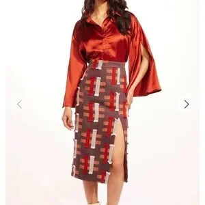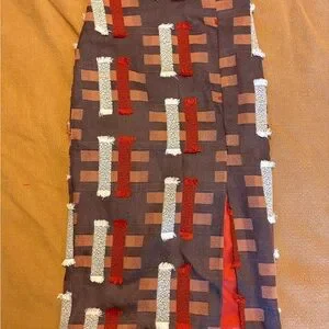 Chic skirt featuring a unique pattern with fringe details. Brand is Eva Franco. Never worn!