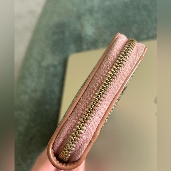 Authentic GUCCI MONOGRAM GG Logo Ribbon Beige Zip Around