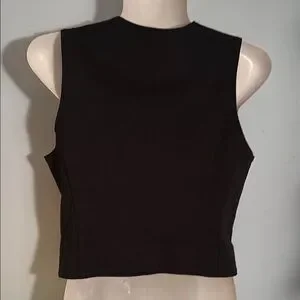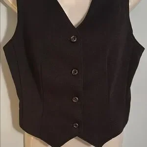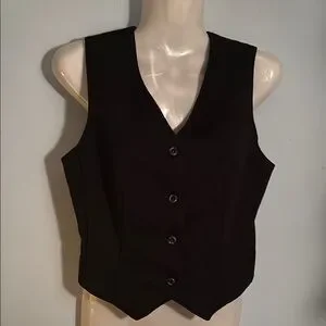 This elegant black vest is perfect for adding a touch of sophistication to any outfit. Its sleek design and classic color make it a versatile addition to your wardrobe, size 8