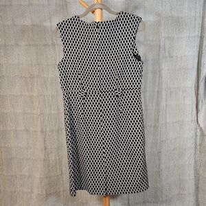 Soho Apparel $75 Size 14 Black White Geometric Cap Sleeve Stretch Midi Dress
