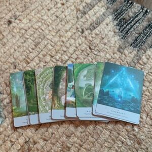 Explore the mystical with The Ancient Stones Oracle Deck by . This beautifully designed deck features a serene blend of green and blue hues, perfect for enhancing your spiritual journey. Brand new - see zoomed in photo for small dent on corner of package.