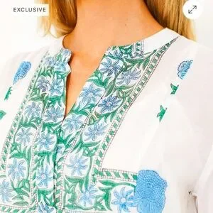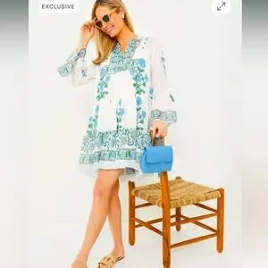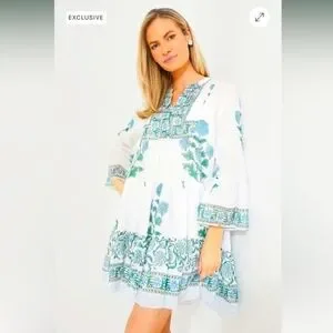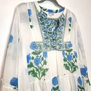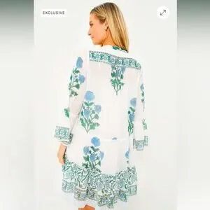Tuckernuck Juliet Dunn White Poppy Flared Sleeve Dress. Fully-lined. 100% Cotton. Snap-on neckline closure. Tiered design.