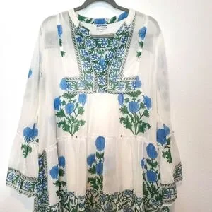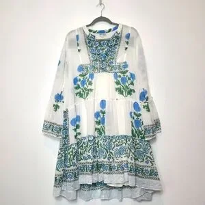 Tuckernuck Juliet Dunn White Poppy Flared Sleeve Dress Size XL