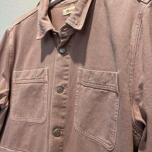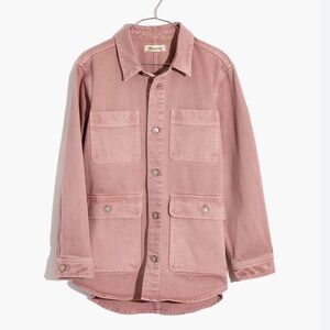 MADEWELL Ashford Chore Jacket in Vintage Petal (Dusty Pink), Women’s size XL. In good, preloved condition, see photos for additional details. The size and material tag have been cut out, this XL is roomy, a bit oversized and is a heavier cotton denim. Note: Color is more accurate from the stock photos from Madewell.