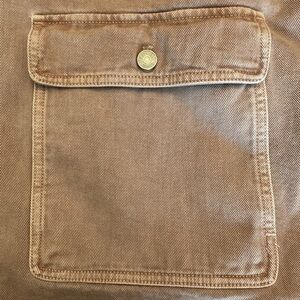 From Madewell: We made our classic chore jacket even more user-friendly with hand-warming double-entry pockets. The perfect pop-on-top layer, it can be worn indoors and out.