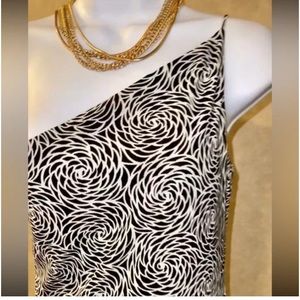 In perfect condition-don’t think it has been worn. Black and white Laundry by Shelli Segal dress size 2. Strapless on one side. Ruffle type around the bottom. 100% polyester lining 100% polyester