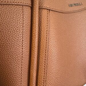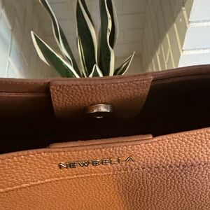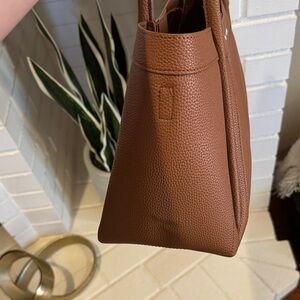 Beautiful brown purse, used just once. Plenty of room to carry anything in it! I just don’t have a use anymore. Vegan leather.