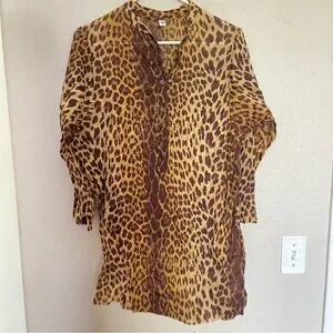 Moschino Brown Leopard Print swim cover up blouse Large