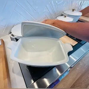Super Deep (4.5Qt) Cream Rectangular Baker with high lid. Ideal for baking sourdough, sweetbreads, meatloaf and of course serving.