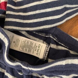 Comfortable 3T sized striped pajama set by Carter's. Includes red and navy striped long sleeve and long pants sets. Soft and cozy for bedtime. Excellent like-new condition. No flaws.
