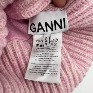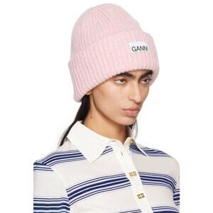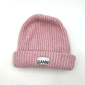 Ganni Pink Oversized Wool Rib Knit Beanie Hat