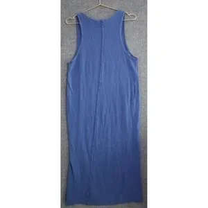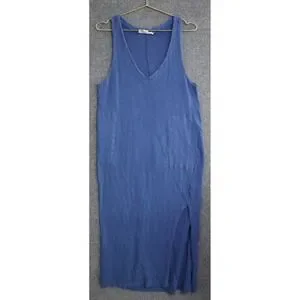 Free People Beach Dress Women Medium Blue Textured Cotton V Neck Slit Hem Maxi