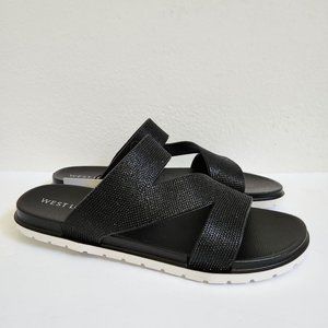 West Loop Women's Casual Slip-on Glitter Slide Sandals, Black