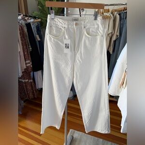 Five pockets, belt loops, finished hem