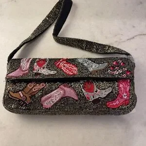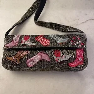 COWGIRL BOOTS BEADED Embellished Western Theme Women's Bag