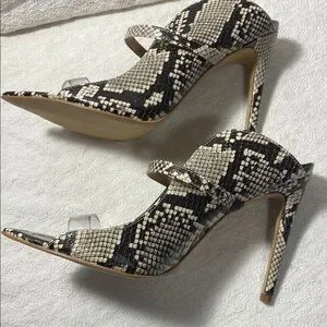 Aldo Snakeskin Patterned Black and Cream Heels with Stiletto Design Chic City
