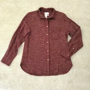 J Crew Red Plaid Shirt Womens Size 6 Flannel Button Down Classic Fit NWT Casual